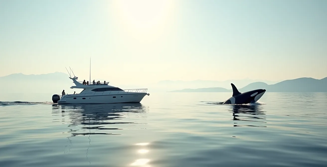 Les moteurs hors-bord des Zodiacs émettent des bruits à haute fréquence, particulièrement stressants pour les cétacés et qui interfèrent directement avec leur communication. Les bateaux modernes, équipés de moteurs électriques pour la phase d’approche, réduisent drastiquement cette pollution sonore. Des observations scientifiques ont montré qu’une réduction de 75% du bruit maritime améliore significativement la capacité des orques à communiquer et chasser. Un opérateur qui investit dans une technologie silencieuse fait un choix économique fort en faveur de l’éthique, car ces navires sont plus chers et limitent le nombre de rotations par jour.