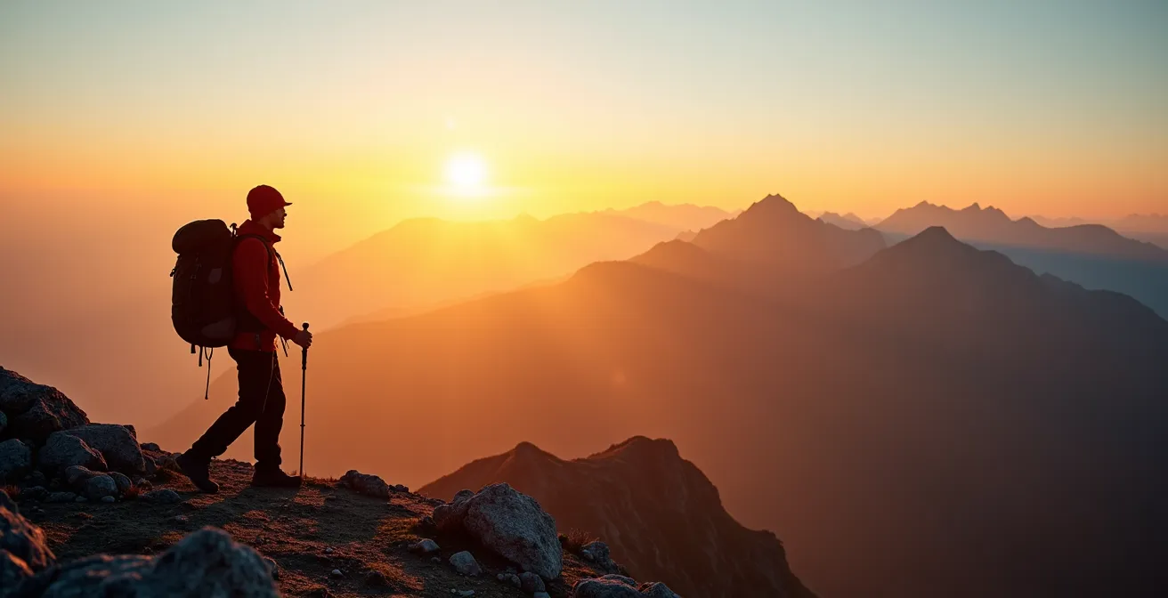 L’ascension d’un sommet est souvent le point d’orgue d’un trek. Cependant, y monter avec un sac de 10 kg est non seulement pénible, mais aussi dangereux. L’agilité et la rapidité sont des facteurs de sécurité, surtout en montagne où la météo peut changer brutalement. L’utilisation d’un refuge comme « camp de base » est une tactique essentielle de la randonnée en itinérance. Elle permet de s’alléger au maximum pour ne garder qu’un sac de sommet pesant entre 2 et 3 kg.